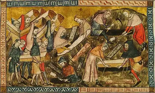 Urban residents and other groups also developed preventive measures in response to calamities such as war, famine, floods and widespread disease.[36][37][38][39] During and after the Black Death (1346–53), for instance, inhabitants of the Eastern Mediterranean and Western Europe reacted to massive population decline in part on the basis of existing medical theories and protocols, for instance concerning meat consumption and burial, and in part by developing new ones.[40][41][42] The latter included the establishment of quarantine facilities and health boards, some of which eventually became regular urban (and later national) offices.[43][44] Subsequent measures for protecting cities and their regions included issuing health passports for travelers, deploying guards to create sanitary cordons for protecting local inhabitants, and gathering morbidity and mortality statistics.[45][46][47] Such measures relied in turn on better transportation and communication networks, through which news on human and animal disease was efficiently spread.