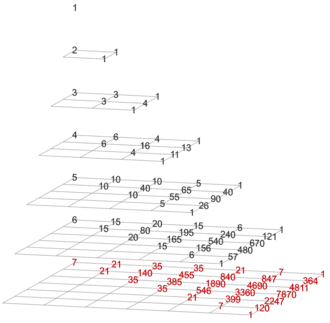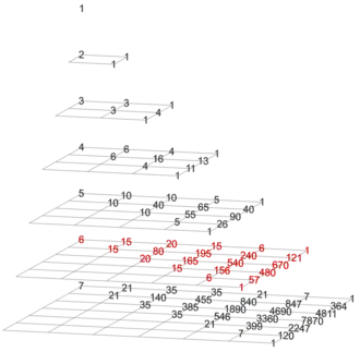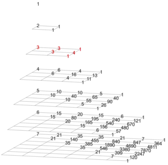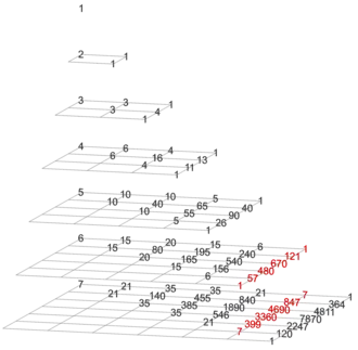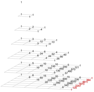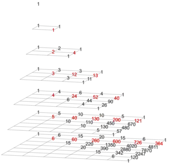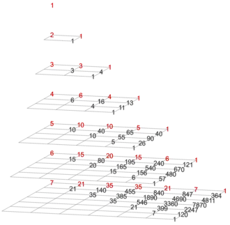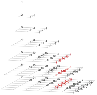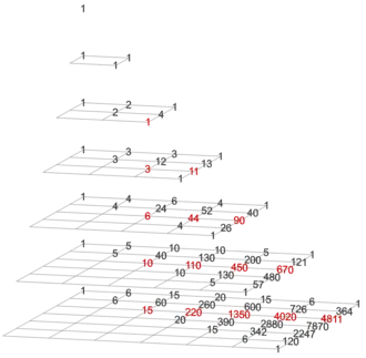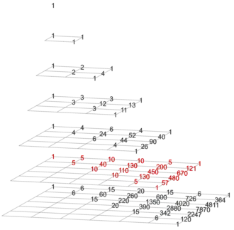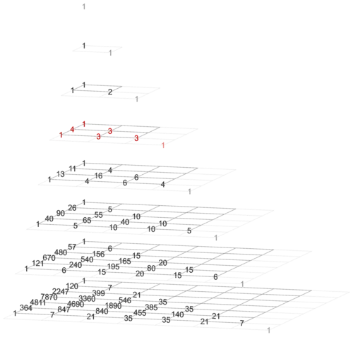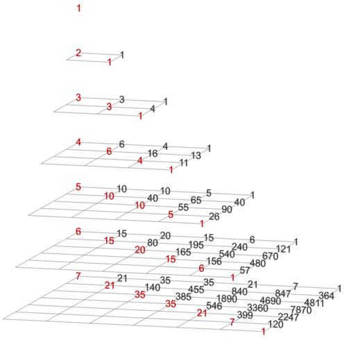 depth − gravity = 0 Pascal's triangle (with trivial column on the left)