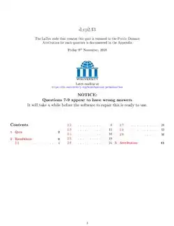 \author{The LaTex code that creates this quiz is released to the Public Domain\\