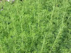 {{Free media}}Its bloom period is July to October in North America.[19] Its pollen is wind-dispersed, and can be a strong allergen to people with Allergic rhinitis (hay fever).[20][21]