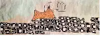 Vividly colored designs and murals were found painted on many of the house’s interior walls. Some walls were painted bright red all over; others were decorated with leopard motifs or complex patterns that may have mirrored the designs in woven wool or flax. One painting shows vultures flying over headless human bodies; another seems to show the houses of Çatalhöyük with an erupting volcano in the background.