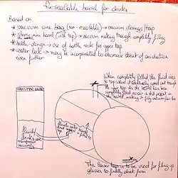 This barrel with tap is intented to increase storage capacity/shelf life for several drinks. When used in conjunction with the underground refridgerated room, it may replace refridgerators completely. This, as refridgerators are used primarily for storing drinks and with a well-balanced shedule of eating (instead of eating all the time; only at certain moments in which you want to go fetch several things from the cellar anyway) no lack of convenience would result.