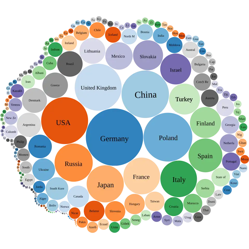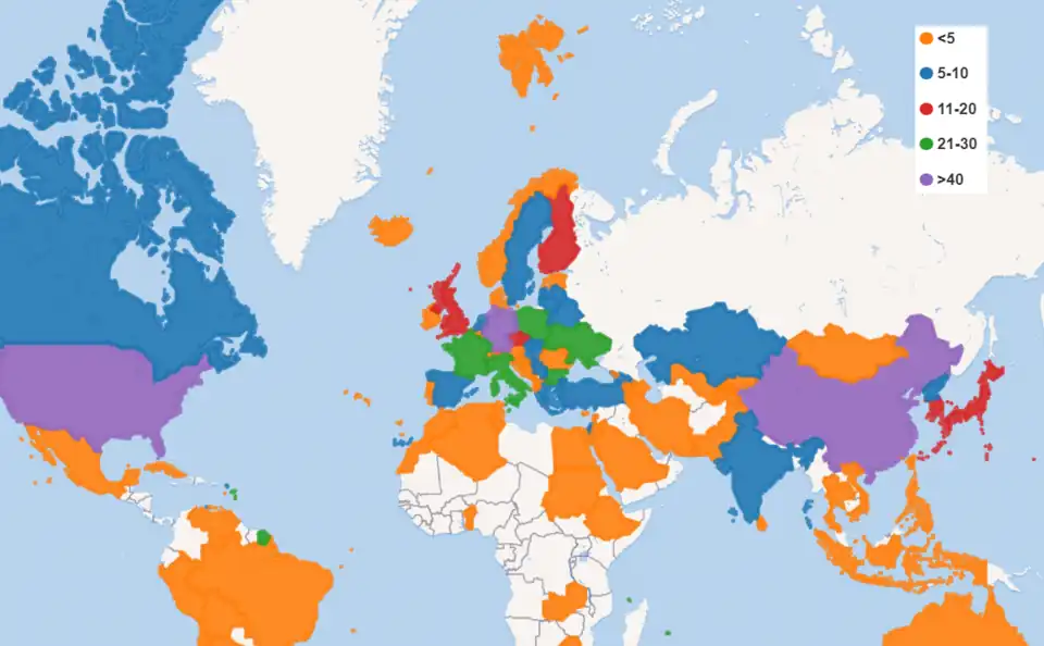 | 8 | Russia | 39 | 2,8 % |