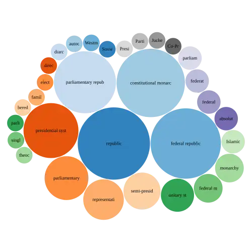 Let's construct a bubble diagram of countries' government forms, where the size of the bubble will correspond to the number of countries with one form of government or another.
