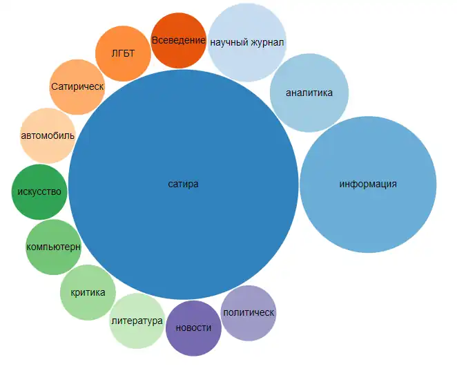 The most popular genres were: satire, information, analytics, scientific journal, omniscience.
