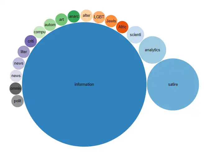 Let us construct a bubble diagram according to the "main subject" property of the newspapers of the whole world on the Wikidate: