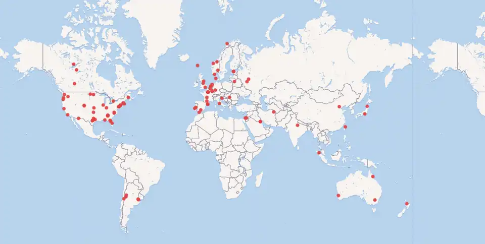 With the help of this script, it is notice that newspapers with the "coordinate location" property have geographical coordinates, in most cases, corresponding to cities in Europe and America.