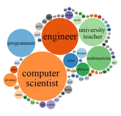 Let's construct a bubble diagram showing which professions prevail among people who develop programming languages.