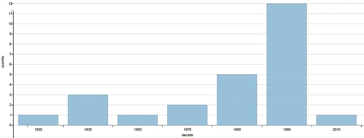 GROUP BY ?decade # Group by decade