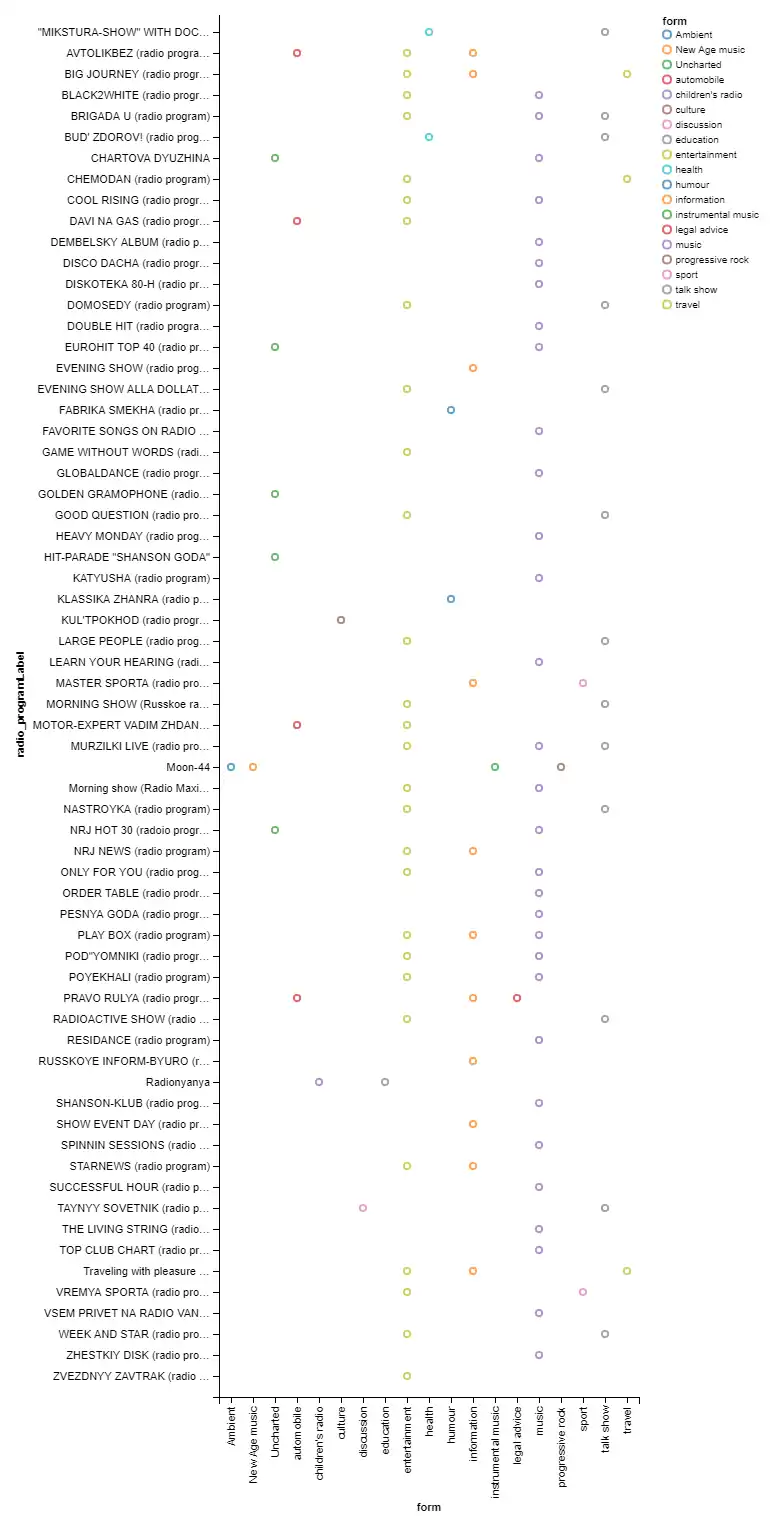 The figure above describes the relationship of Russian radio programs with their corresponding genres.
