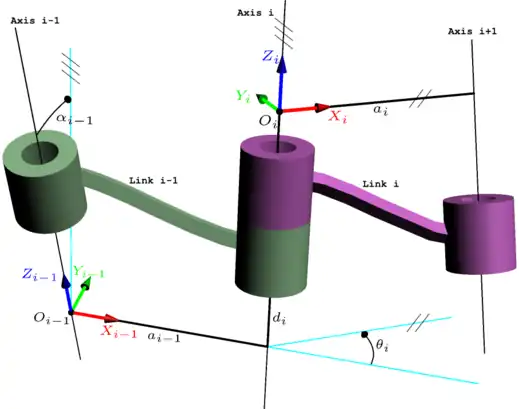 - ↑ "Denavit–Hartenberg parameters". Wikipedia. 2019-12-07. https://en.wikipedia.org/w/index.php?title=Denavit%E2%80%93Hartenberg_parameters&oldid=929693604.