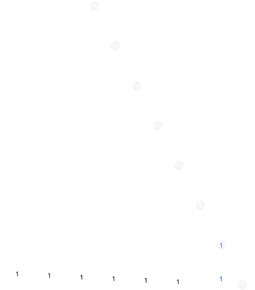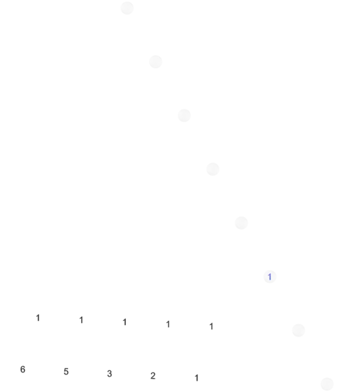 The blue entries are those with valency = depth = gravity. They are always separated from the contiguous black entries.
