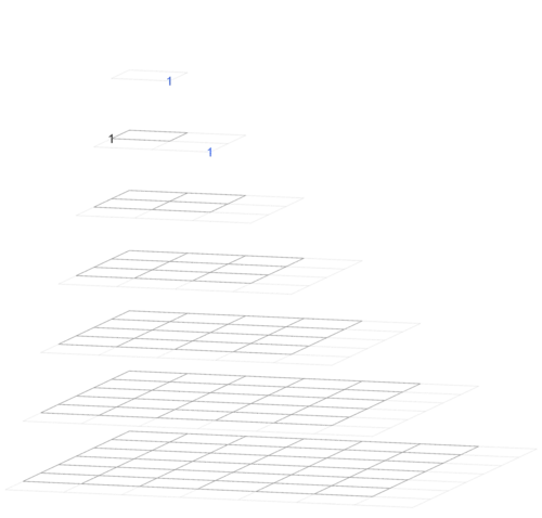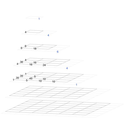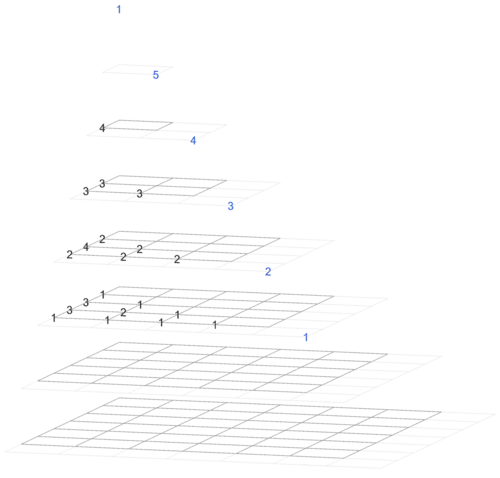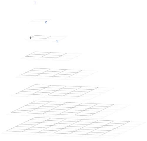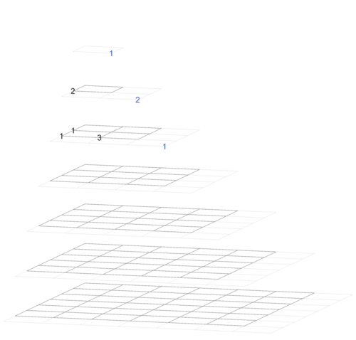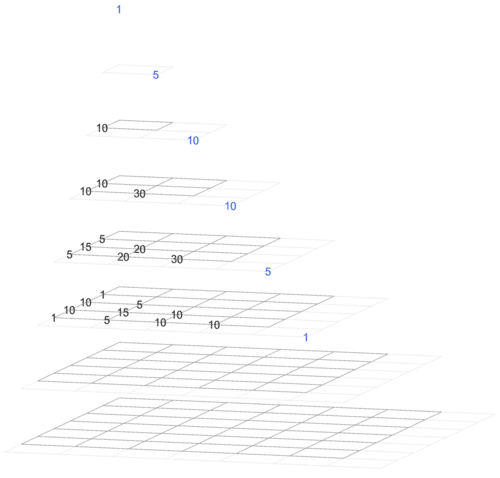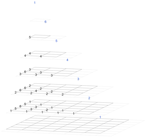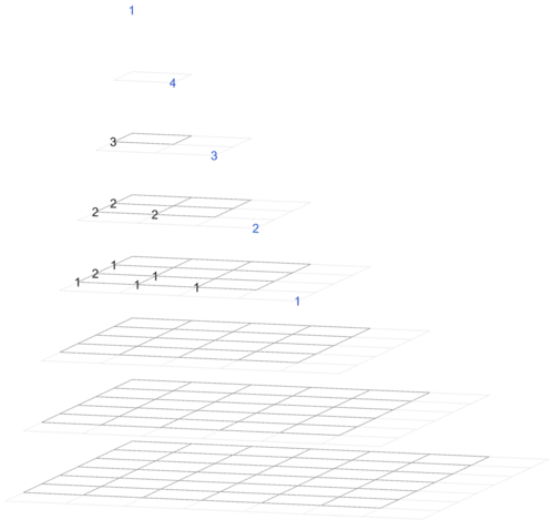 The image type on the right goes through the hyperpyramid by depth. (This image shows the entries of Magnolia as a square array in every horizontal rectangle.)