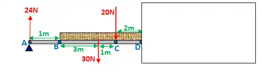 Shear force at D: 24 - 30 - 20 = -26N