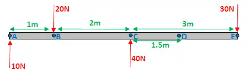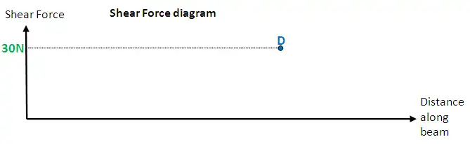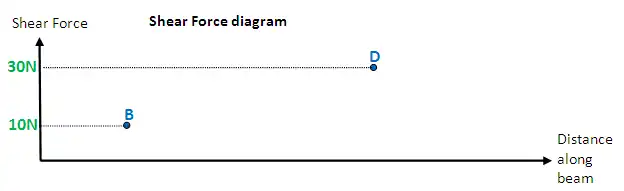 Shear force at D = 10N - 20N + 40N = 30Newtons