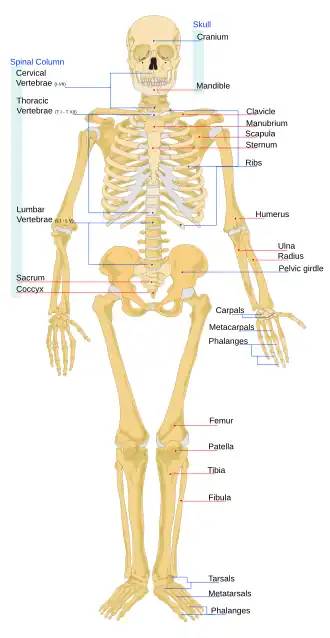 Examples: Cranium (skull): the fused bones covered by your scalp; coccyx (tailbone): the fused bones at the base of your spine.