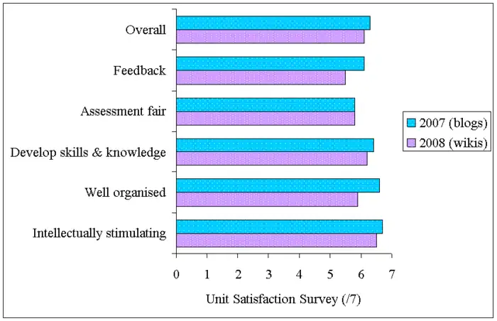 OverviewSummary: Innovative teaching of social psychology using open access blogs and wikis in 2007-2008 received a high level of student satisfaction.