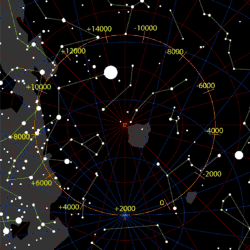 "There have been many pole stars throughout the millennia. Around 2000 BC, the star Eta Hydri was the nearest bright star to the Celestial south pole. Around 2800 BC, Achernar was only 8 degrees from the south pole."[11]