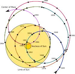 - ↑ Javaraiah (2005). "Sun's retrograde motion and violation of even-odd cycle rule in sunspot activity". Monthly Notices of the Royal Astronomical Society 362 (4): 1311–8. doi:10.1111/j.1365-2966.2005.09403.x.