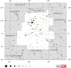 - ↑ W. T. Lynn (August 1885). "Brightness of β Aquilae -- A Correction.". The Observatory 8 (8): 271.