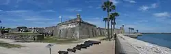 The United States of America (Spanish: Estados Unidos), usually referred to as the United States, the U.S. or America, is a constitutional federal republic comprising fifty states and a federal district, as well as several territories, or insular areas, scattered around the Caribbean and Pacific. The country is situated mostly in central North America, where its forty-eight contiguous states and Washington, D.C., the capital district, lie between the Pacific and Atlantic Oceans, bordered by Canada to the north and Mexico to the south. The state of Alaska is in the northwest of the continent, with Canada to its east and Russia to the west across the Bering Strait, and the state of Hawaii is an archipelago in the mid-Pacific.