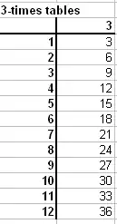 - Insert more columns to create a table that shows not just the 3-times-tables, but right through to the 12-times-tables.