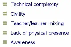 - Complexity of wiki communities; can be off-putting for new participants. (1:03:30)