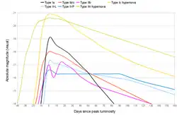 - ↑ Jesse B. Doggett; David Branch (1985). "A comparative study of supernova light curves". The Astronomical Journal 90: 2303. doi:10.1086/113934.