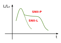 | Type II-L Displays a "linear" decrease in its light curve (linear in magnitude versus time).[18] | ||||||||
