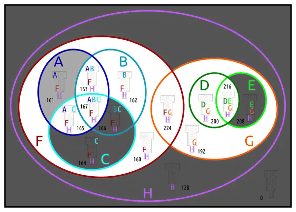 In the Euler diagram on the right the fact that everything is H is expressed by the light H on the inside of the universe.