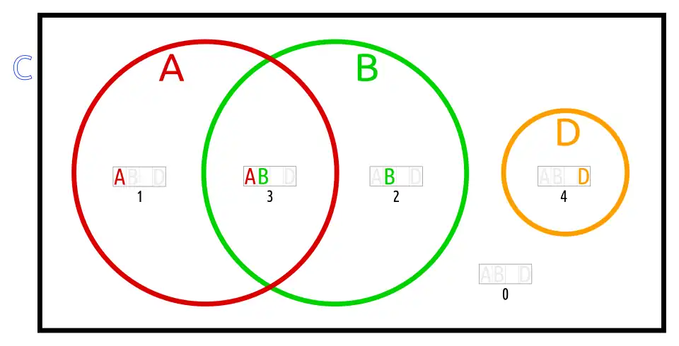 This is a 4-ary Boolean function. It contains the usual kind of information about A, B and D, as well as the fact that C is empty.