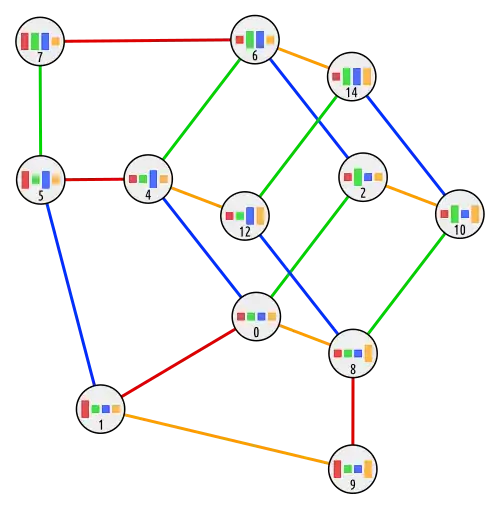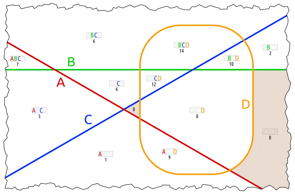 This Boolean function has 12 of 16 true spots. It is similar to medusa, but without spot 3.