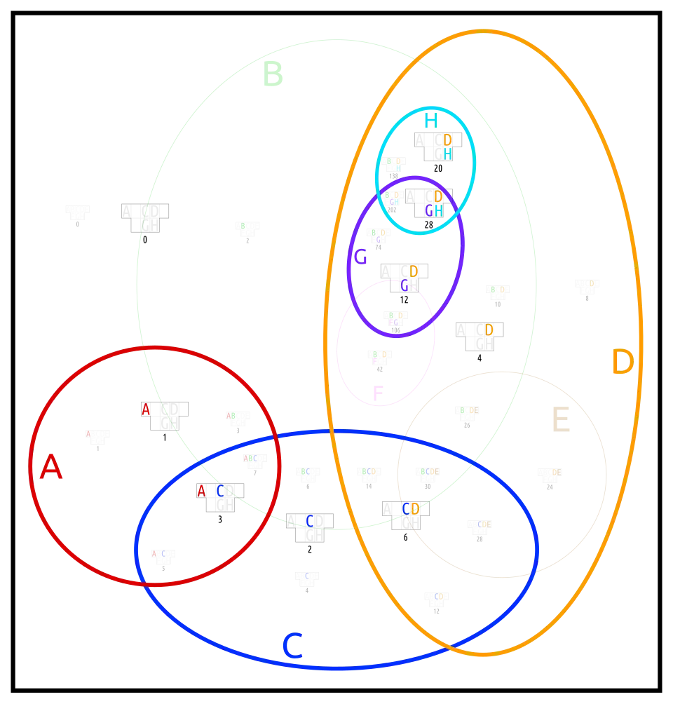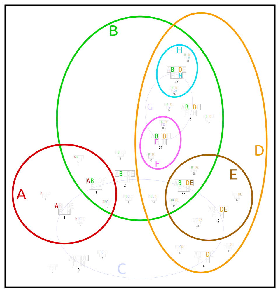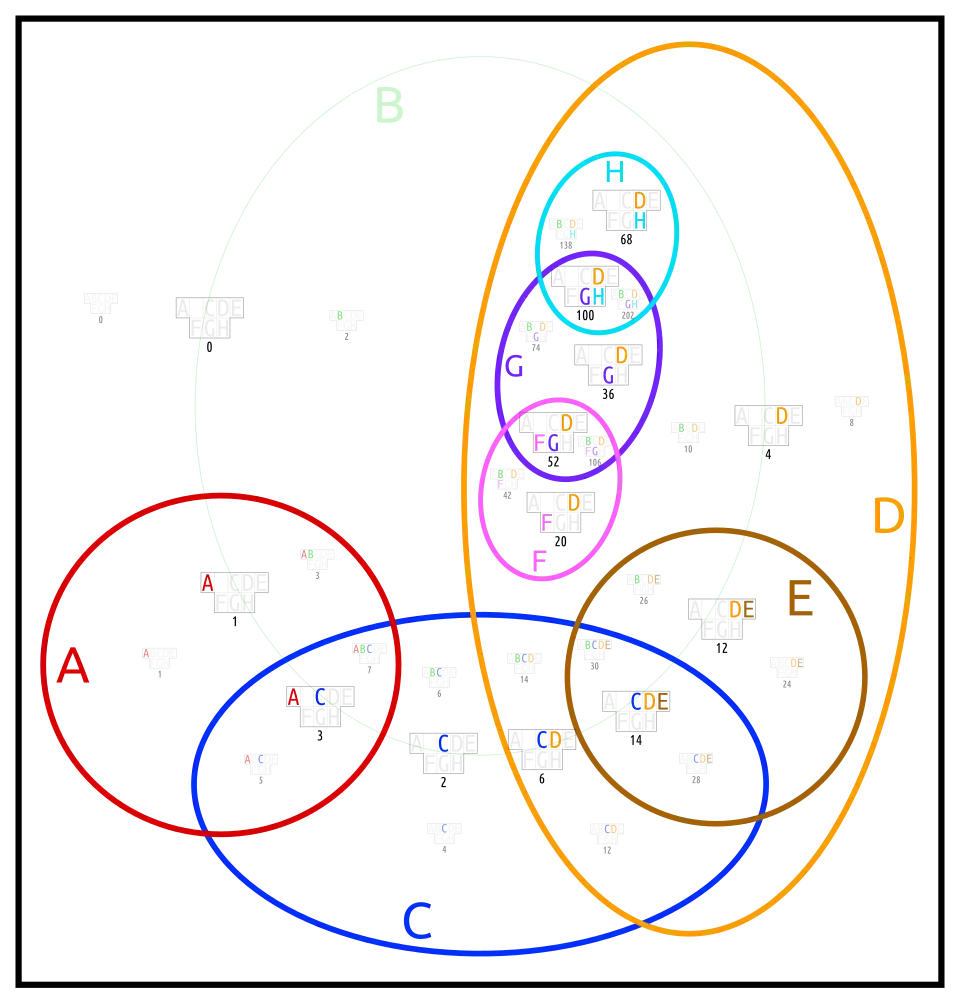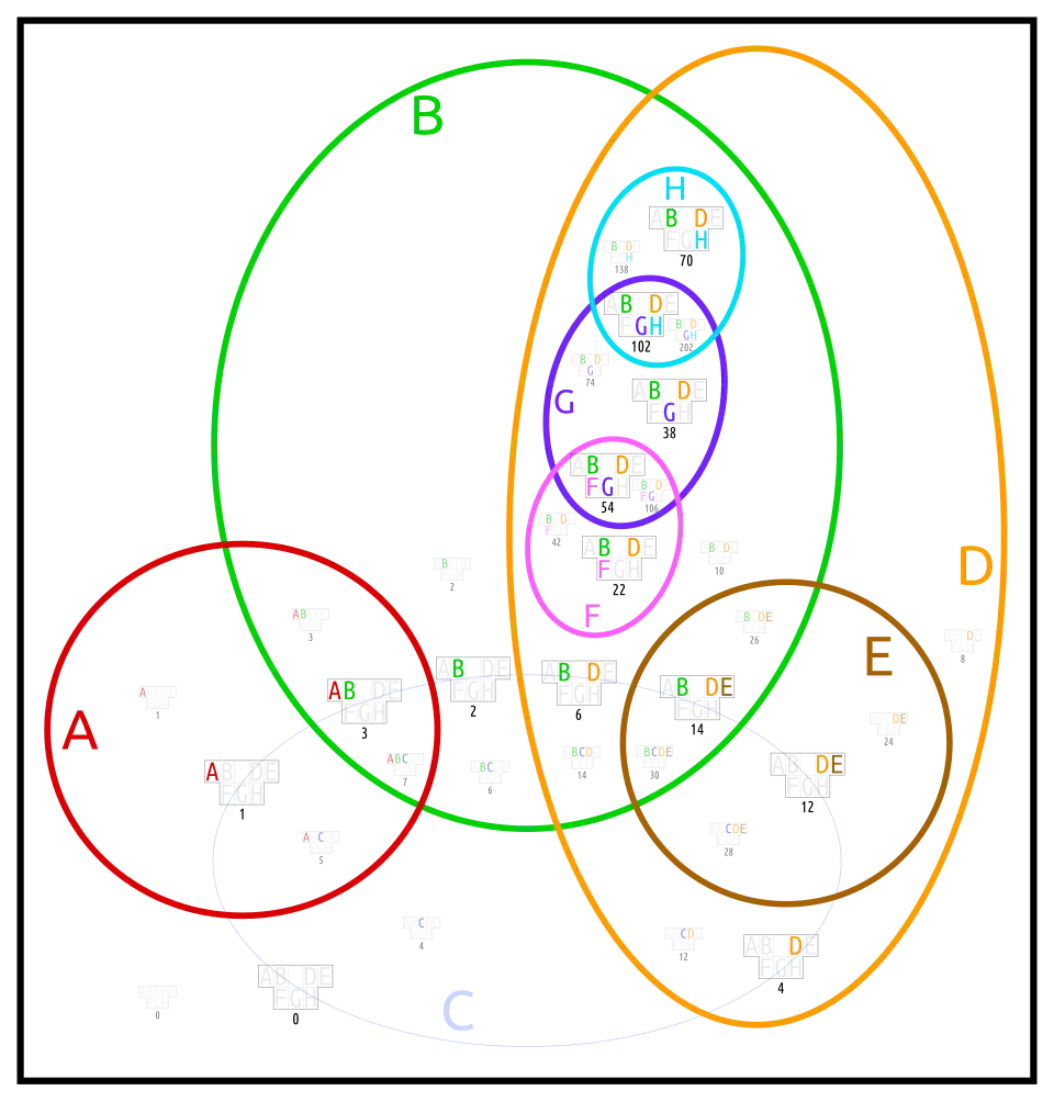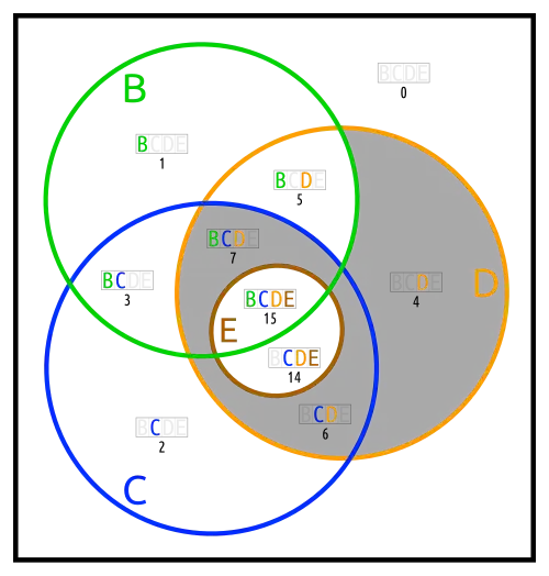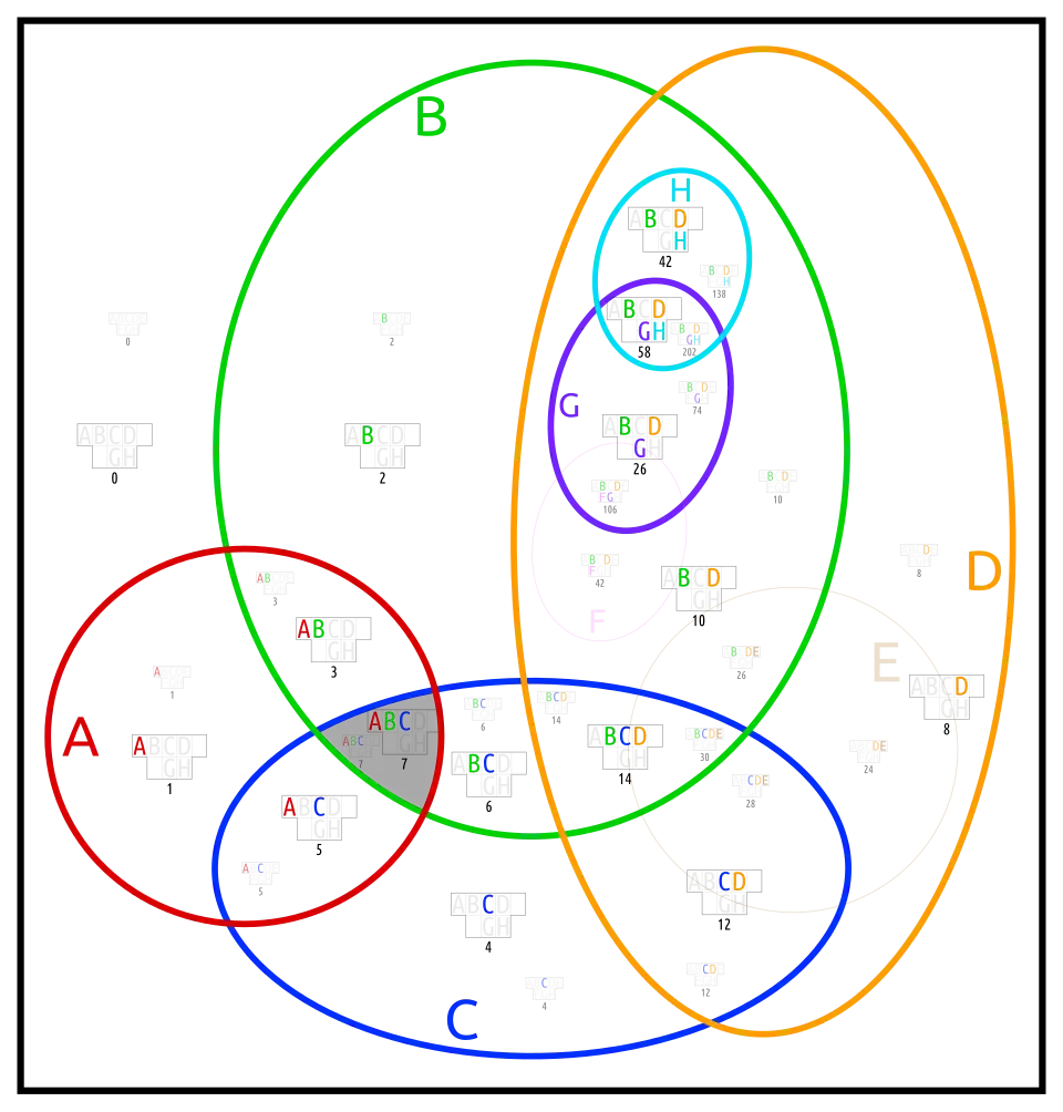 The result is a 3-circle Venn diagram without gapspots, i.e. the tautology. | |