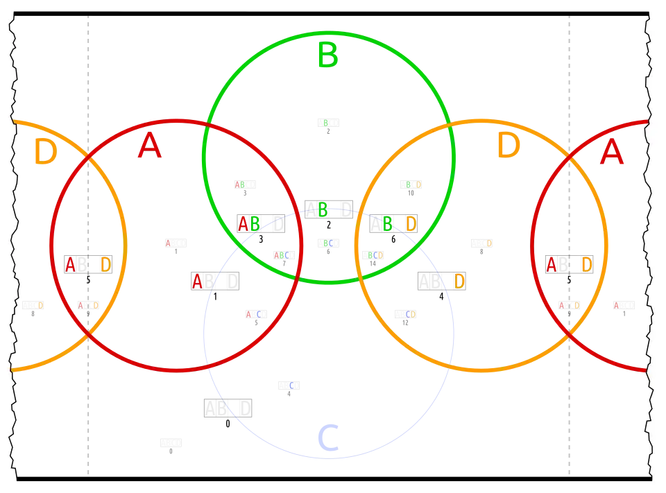 Also a gap variant of bazinga. The 8 sets create 10 true cells and 8 gaps.