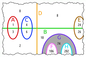 As above, but spot 2 is false. This makes D the complement of A and C.