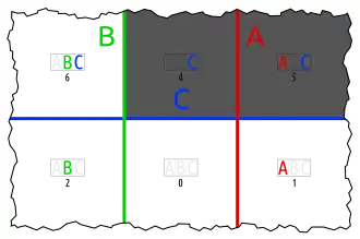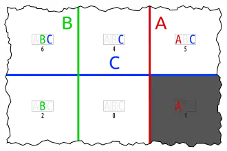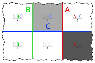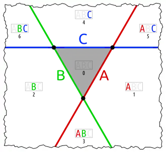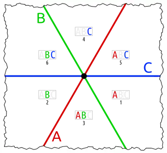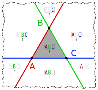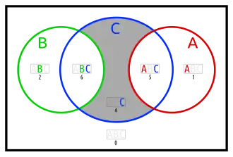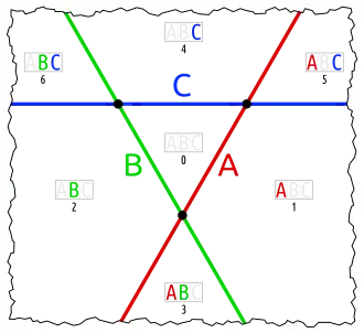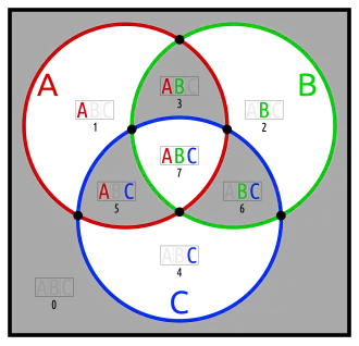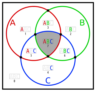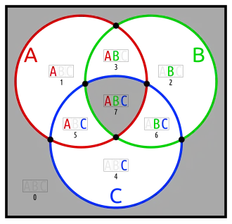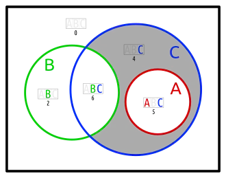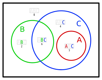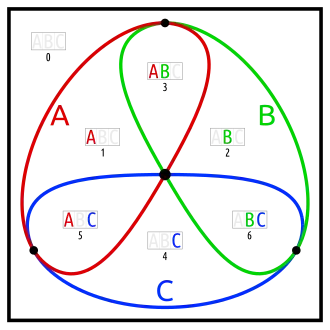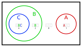 - one set in an otherwise empty intersection (karafa: C in A∩B)