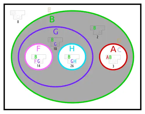 - two sets in an otherwise empty set (sarina: H and F in G)