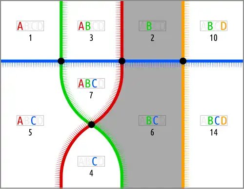 One could choose an Euler diagram with 7 cells (compare bunese), which would remove one of the gapspots. But that would be a random choice, which should be avoided. | |