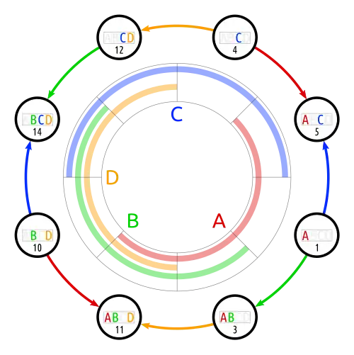 This function can be represented in one dimension closed to a circle. The corresponding graph is an octagon. (Compare piferi.)