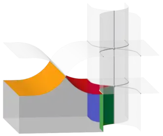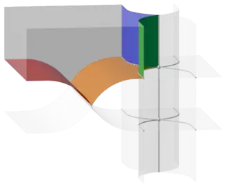 The edge between red and yellow is separate, and the others are two crosses on one axis.