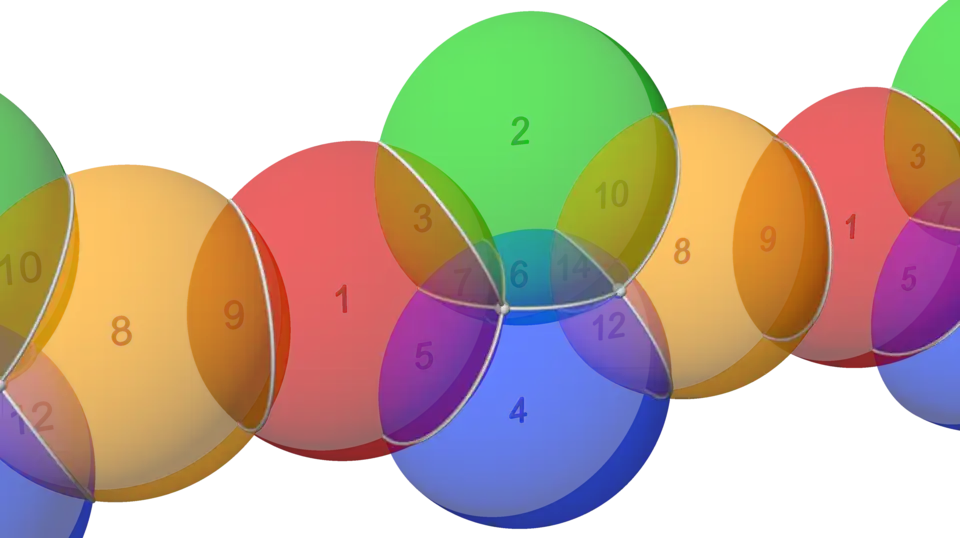 The representation with spheres is not really useful. It is shown here as a step in the search for a good Euler diagram - which started with the circles, and ended with the curved planes.