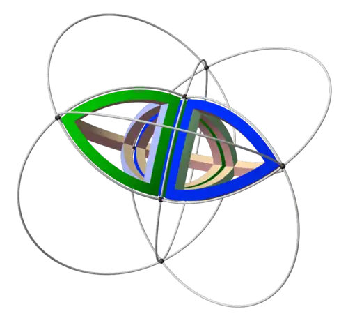 (Only the front side of the spheres is shown, because the full version contains duplicates of the two vertices and the edge between them.)