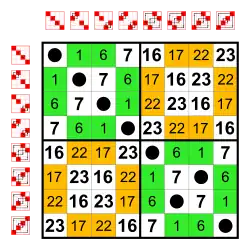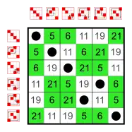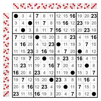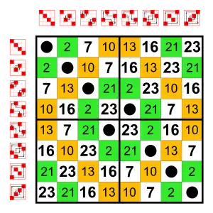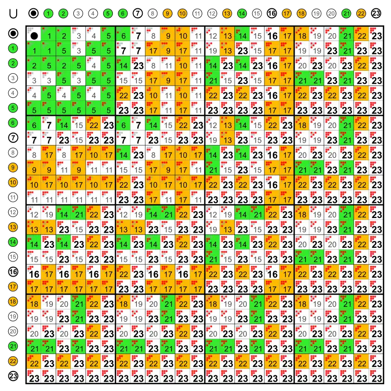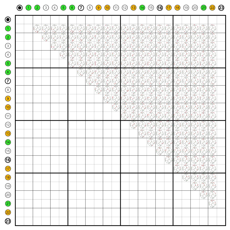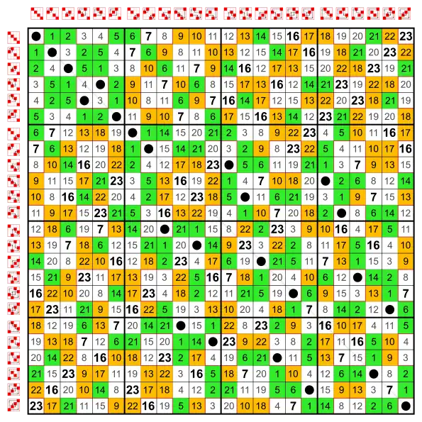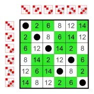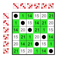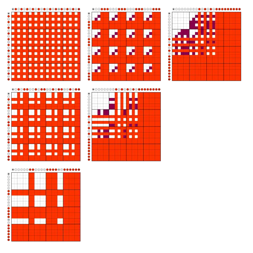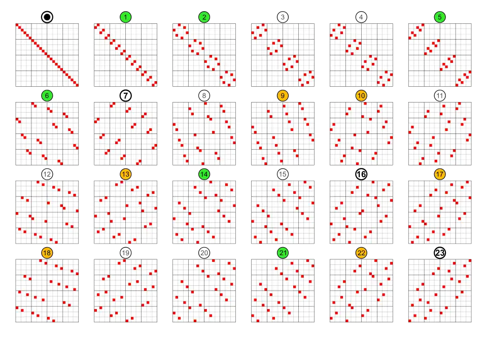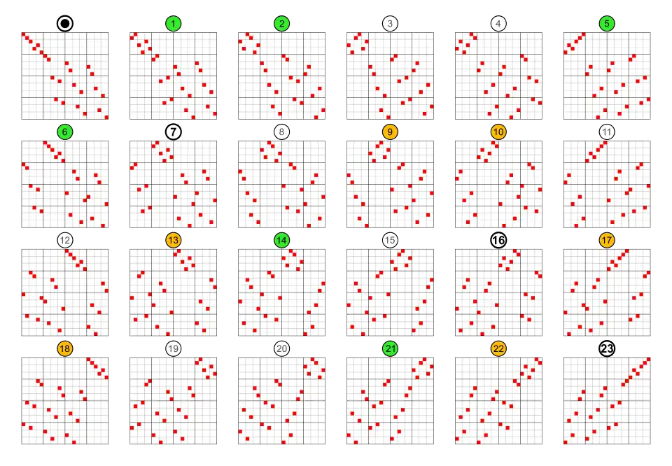 It's worth taking a look at the number of red squares in the 24 matrices above: