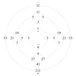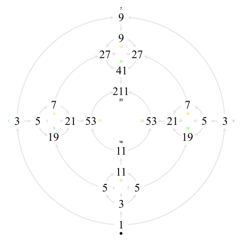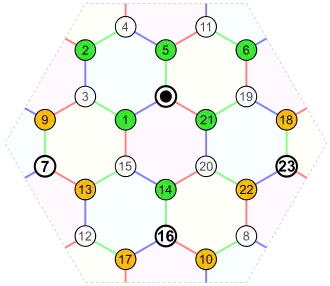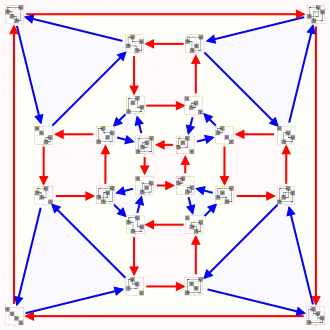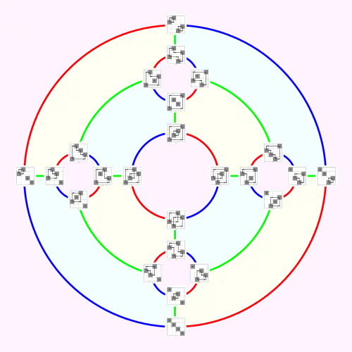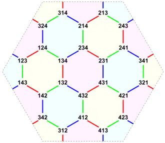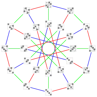 ![]() Triples linked by an edge differ in only one digit. The edge color tells by which: 1st, 2nd, 3rd |