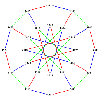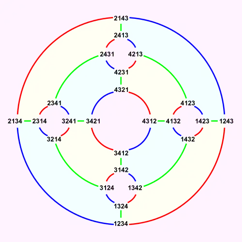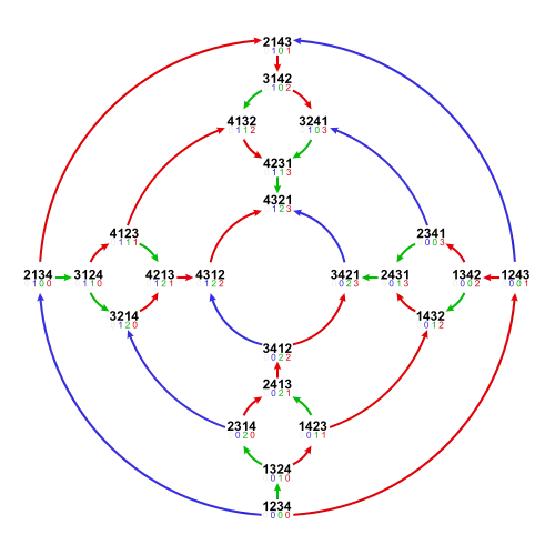 Cycle graphs of S4 with permutations pn and PnGray code order (Steinhaus–Johnson–Trotter algorithm)