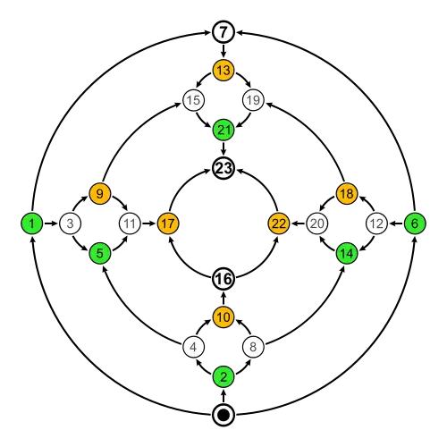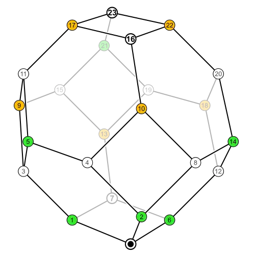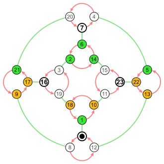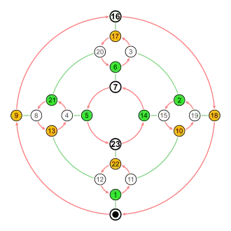 Nauru graph - Generators 1, 5, 21 or (12), (13), (14)