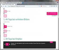 The CAC Tool, applied to a web site (resp. to any html page), automatically checks for issues such as missing alternative texts for images, insufficient contrast, incorrect tagging of tables, missing semantic structuring and many more.
