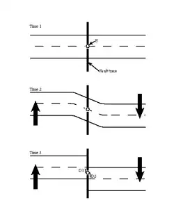 This term is used to describe the abrupt return of elastically deformed rock to its original shape. Elastic Rebound is somewhat similar to a rubber band being stretched and then ripped. After the band was ripped into one whole string, the shape of the string came back to its original shape. This occurs when stress and stress is applied to a rock. So much stress, to the point the rock cannot withstand it! During the process of elastic rebound, energy is released. Some of this energy travels in what is known as "seismic waves", and these waves are the originators of some earthquakes.