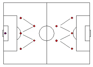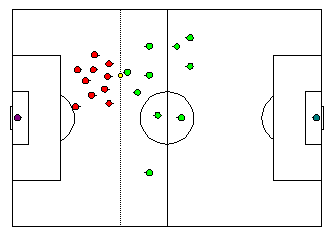 Given two defenders and five attackers, three players are left in-between. The task of these midfielders was to transmit the ball quickly from defence to attack. This 2-3-5 scheme was called pyramidal formation. Games played by both teams in this formation were very attractive both to play and to watch. The ball, which is faster than the quickest player, could move easily on the ground forward and every player could stay in his assigned zone.