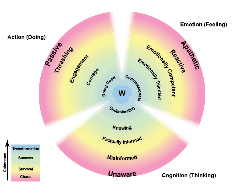 Wisdom requires progression in clear thinking, committed action, and emotional regulation. As we develop and increase our learning and maturity our focus can shift from survival, to success, and eventually to transformation.